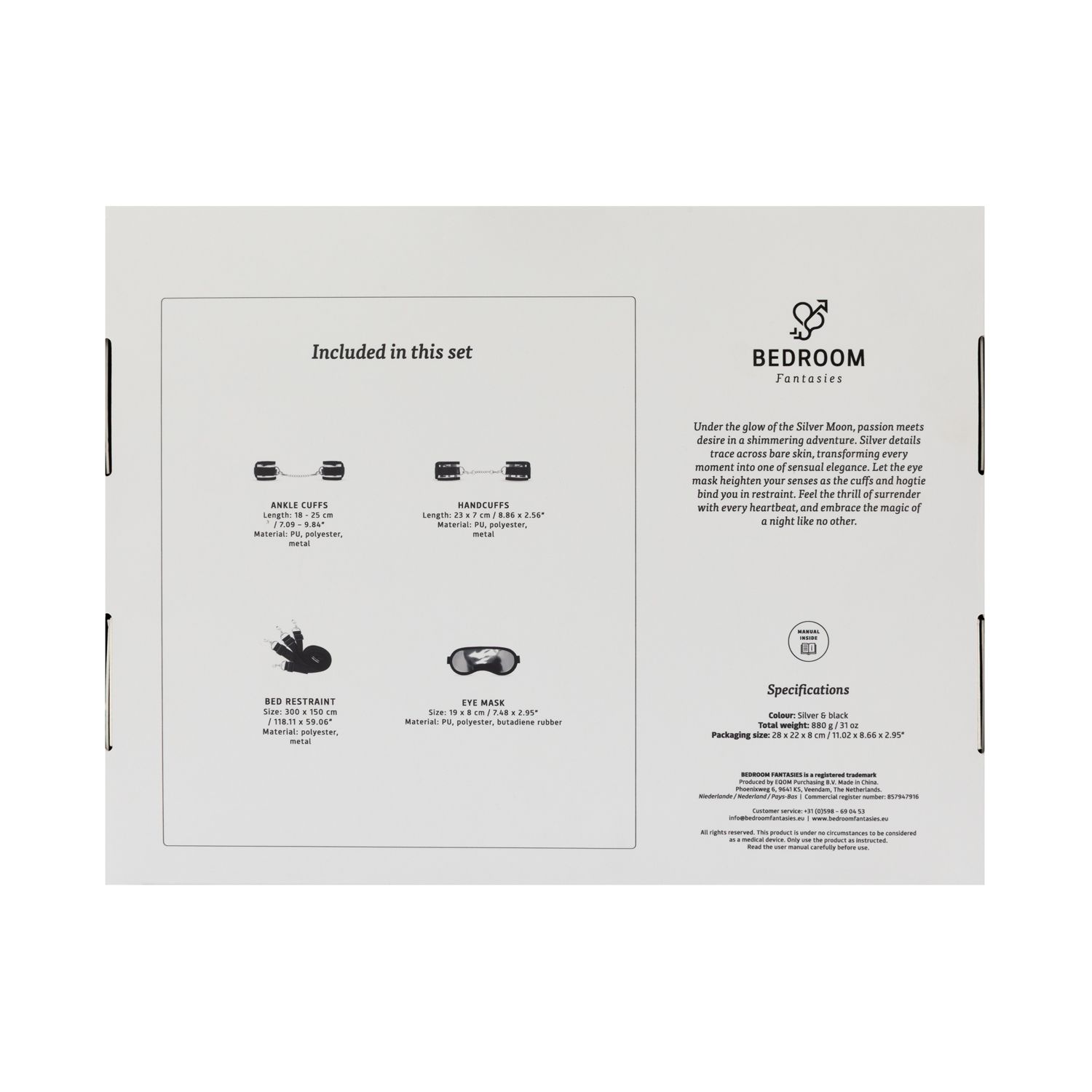 Dankzij het alles-in-één karakter vormt Bedroom Fantasies Silver Moon een laagdrempelige manier om samen nieuwe sensaties te verkennen. De set is eenvoudig op te bergen en snel klaar voor gebruik, waardoor spontane momenten net zo goed passen als geplande avonden samen.