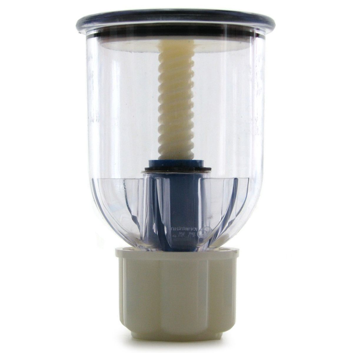 De cup wordt vacuüm gezogen middels een draaiknopje aan de bovenzijde. Er is geen aparte pomp vereist.