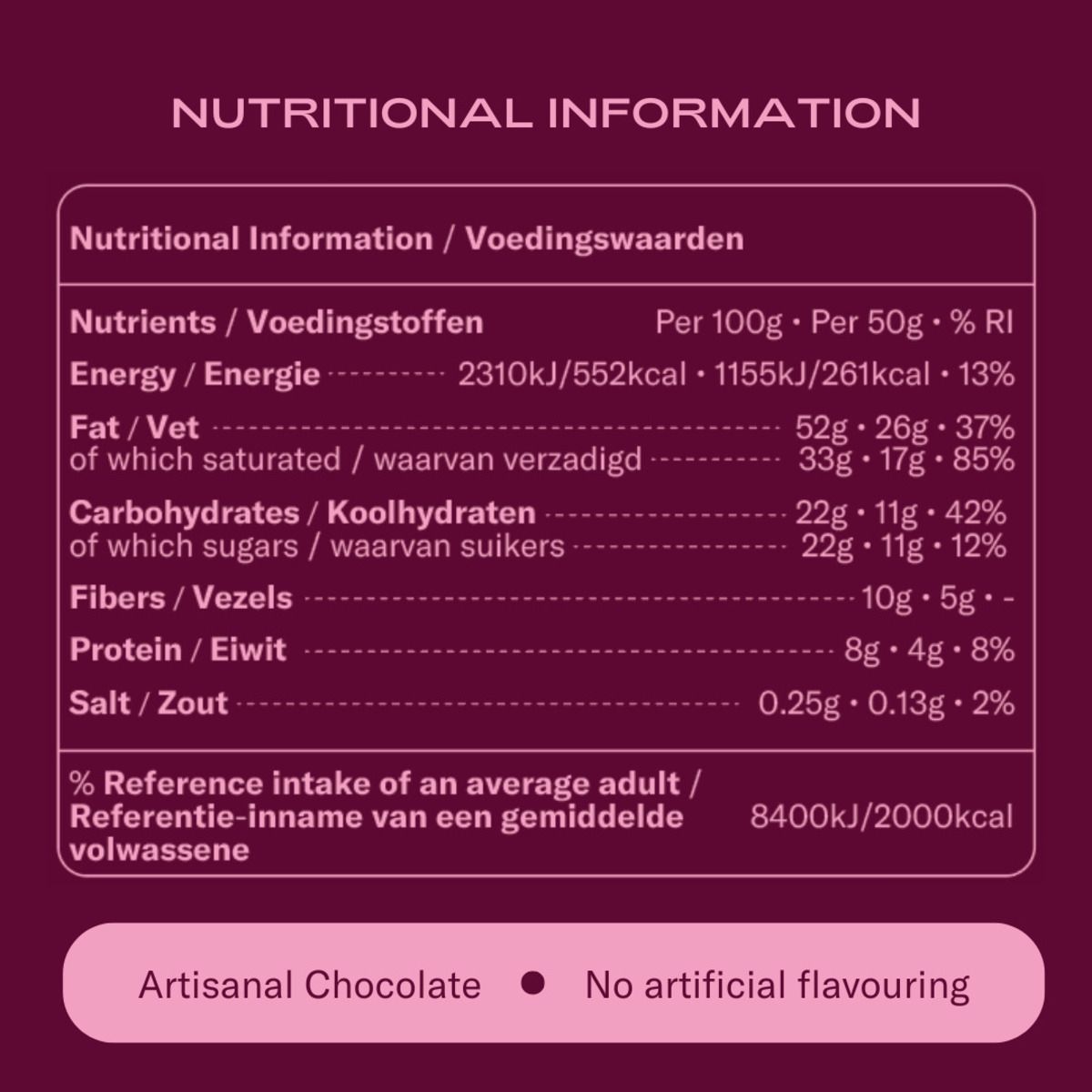 Deze 100% natuurlijke afrodisiacum-chocolade is geschikt voor zowel mannen als vrouwen, en biedt een luxueus alternatief voor traditionele energie- of liefdesupplementen. Handgemaakt in Europa door vakmensen, met alleen de beste cacao en zorgvuldig geselecteerde botanische ingrediënten.