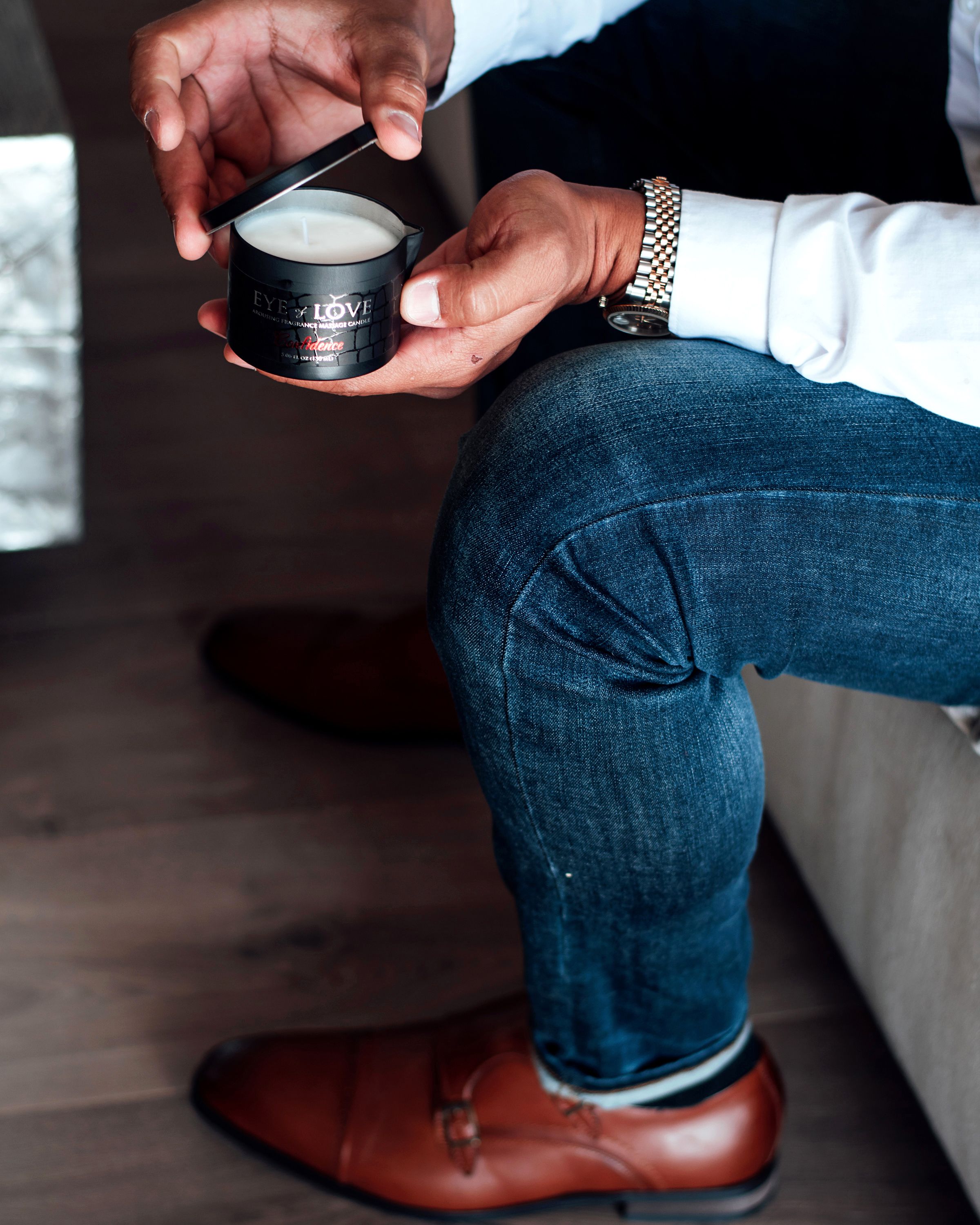 Ontwaak je zintuigen met de Confidence massage kaars van Eye of Love. Deze massage kaars bevat het feromonen stofje androstenol, een natuurlijk lok stofje dat een sterke, seksuele reactie opwekt.
