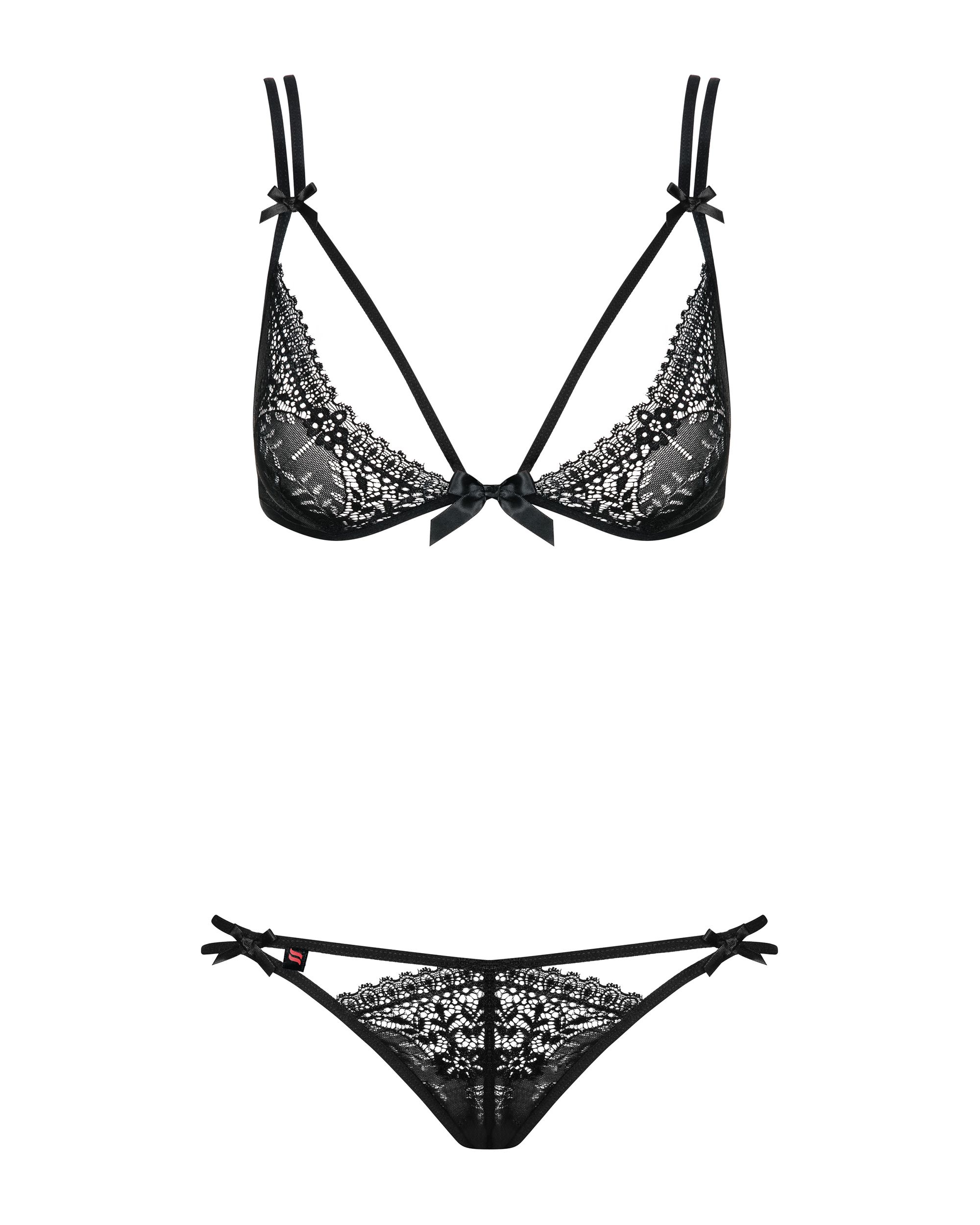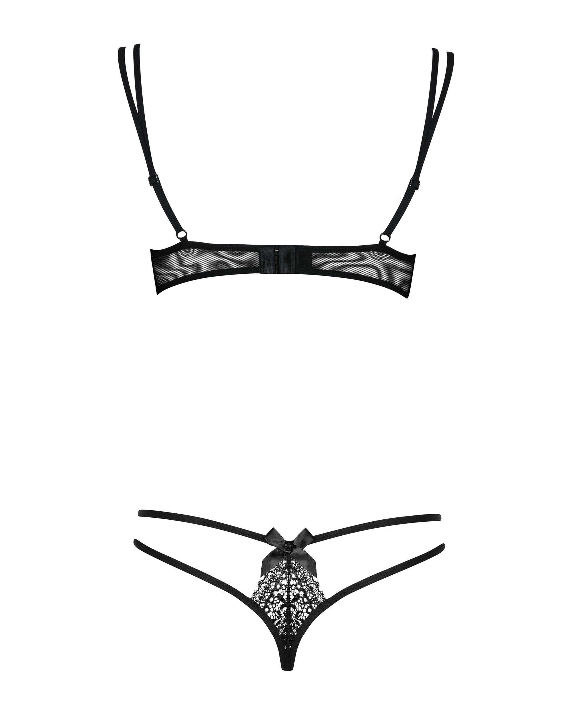 Deze BH-set heeft doorzichtige cups en fijne dunne bandjes. Tevens zijn de dunne bandjes te verstellen en hebben ze meerdere strikjes. Dit comfortabel te dragen setje is perfect voor de late avondjes in de slaapkamer.