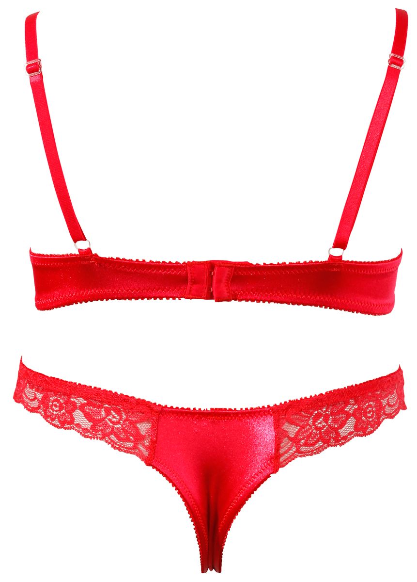 prachtig laten uitkomen. Inclusief een bijbehorende slip met open kruisje. Het setje is gemaakt van mooi satijn met kant.